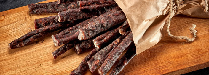 Oz Biltong's biltong stokkies, Snapsticks or Beefsticks, as they are prepared as thin strips, easier to chew and protein rich.